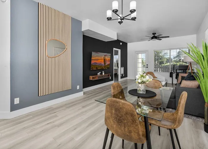 Comfy 2BR-Pool, Yoga Rm, Gym, Cabanas, BBQ,Prkng Scottsdale, un apartamento de 1000 m^2, está situado en Scottsdale, a una distancia de 7 km del Musical Instrument Museum, y ofrece a sus huéspedes una piscina privada y un centro de fitness. El apartamento está situado en el distrito North Scottsdale, no muy lejos del Celebration of Fine Art.
